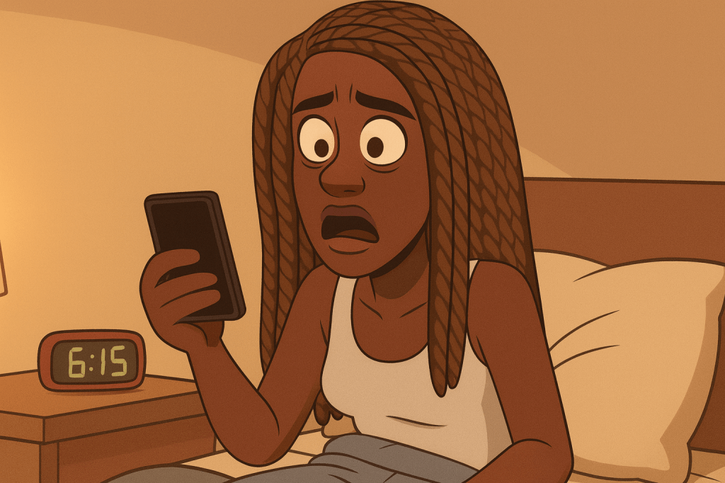 I woke up LATE — like late-late — because my raggedy phone died in the middle of the night.